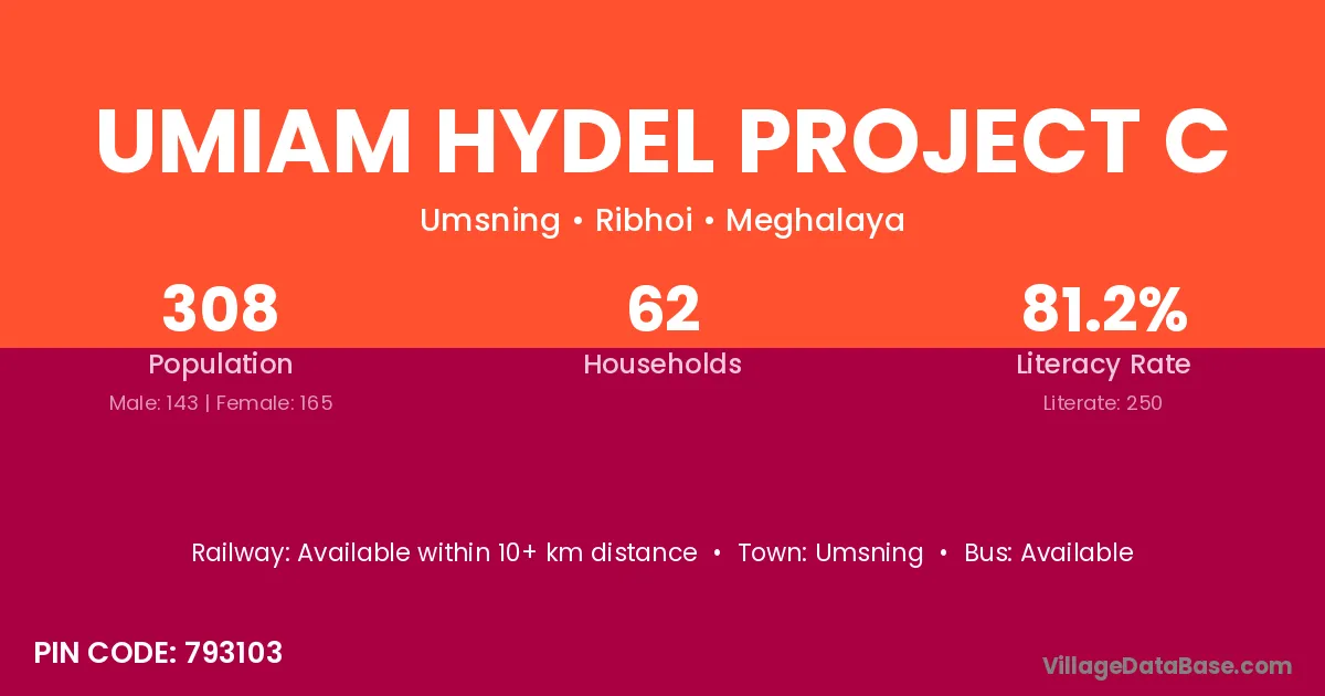 Umiam Hydel Project C village has a total population of 308 people, of which 143 are males and 165 are females.