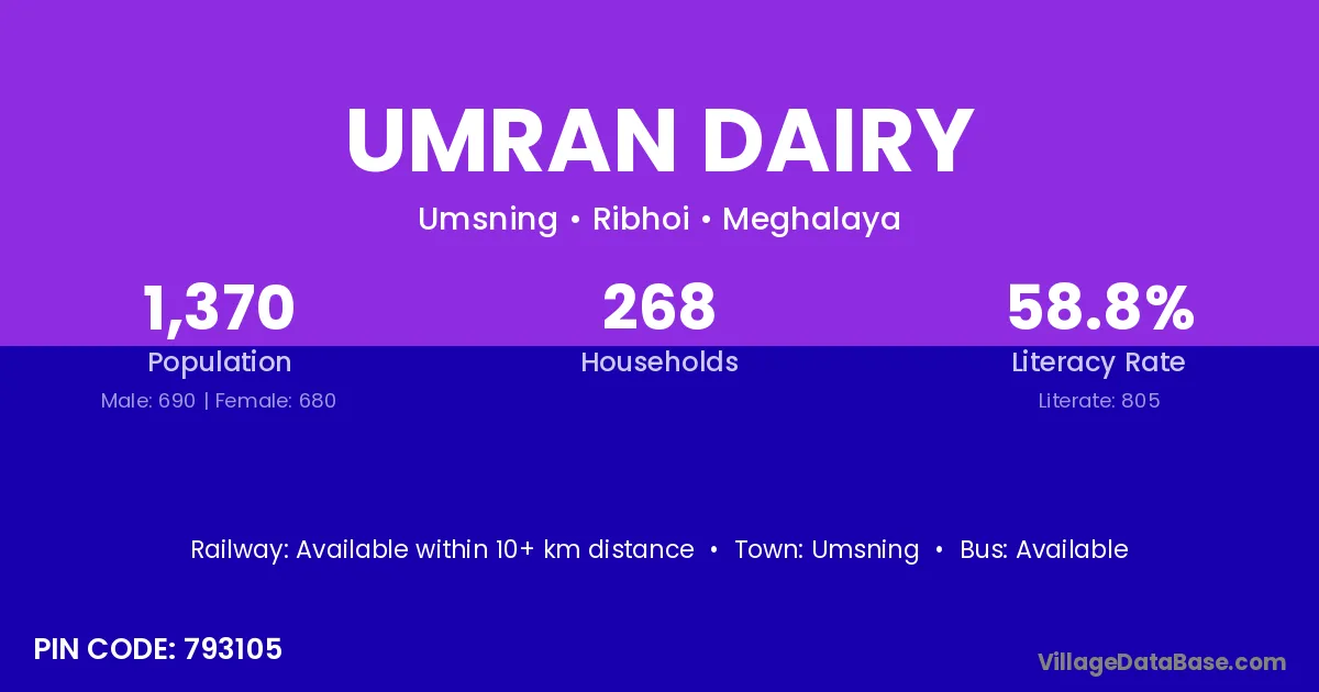 Umsning is the nearest town to Umran Dairy village for major economic activities