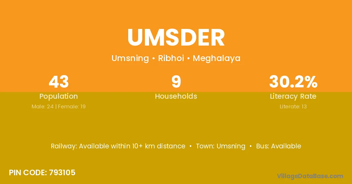 According to Census 2011 information, the village code of Umsder village is 793105.