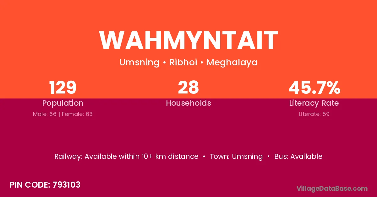 Wahmyntait village has a total population of 129 people, of which 66 are males and 63 are females.