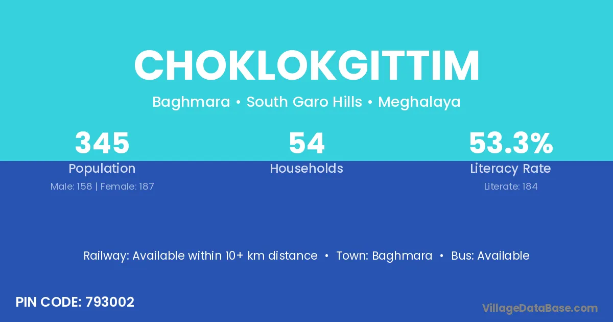 Choklokgittim village has a total population of 345 people, of which 158 are males and 187 are females.