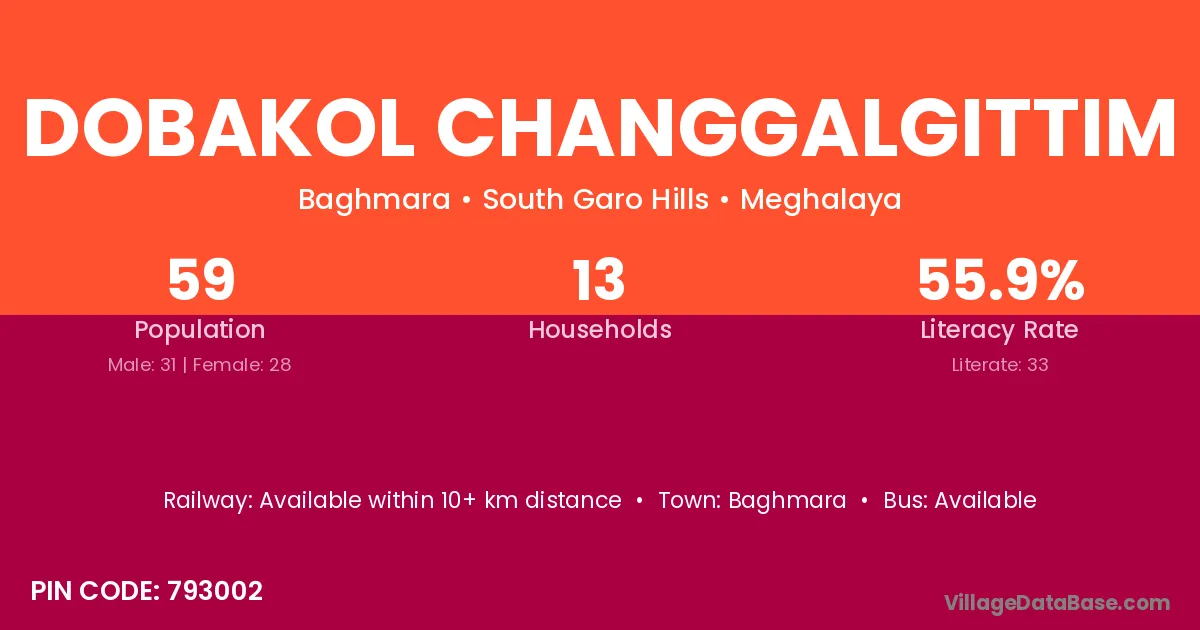 Dobakol Changgalgittim village has a total population of 59 people, of which 31 are males and 28 are females.