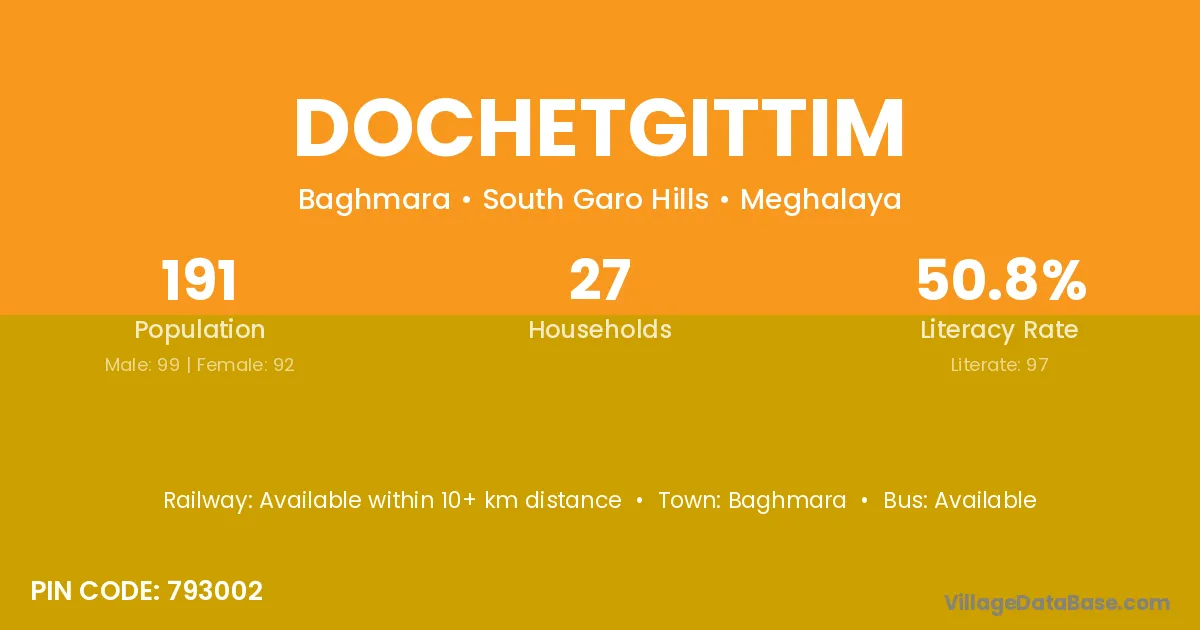 Baghmara is the nearest town to Dochetgittim village for major economic activities