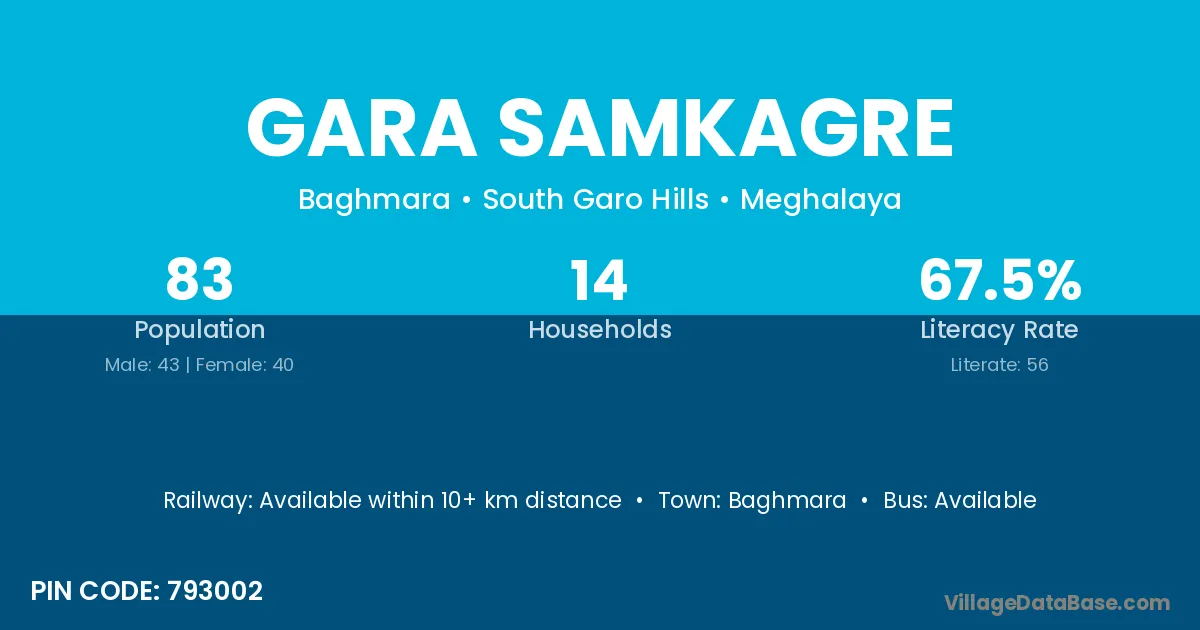 Gara Samkagre village has a total population of 83 people, of which 43 are males and 40 are females.
