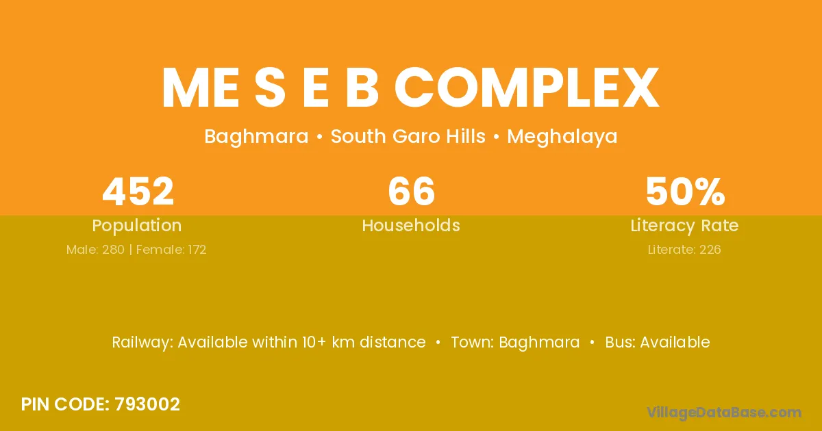 Me S E B Complex village has a total population of 452 people, of which 280 are males and 172 are females.