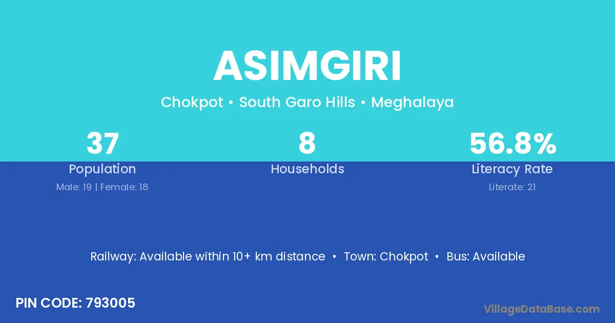 According to Census 2011 information, the village code of Asimgiri village is 793005.