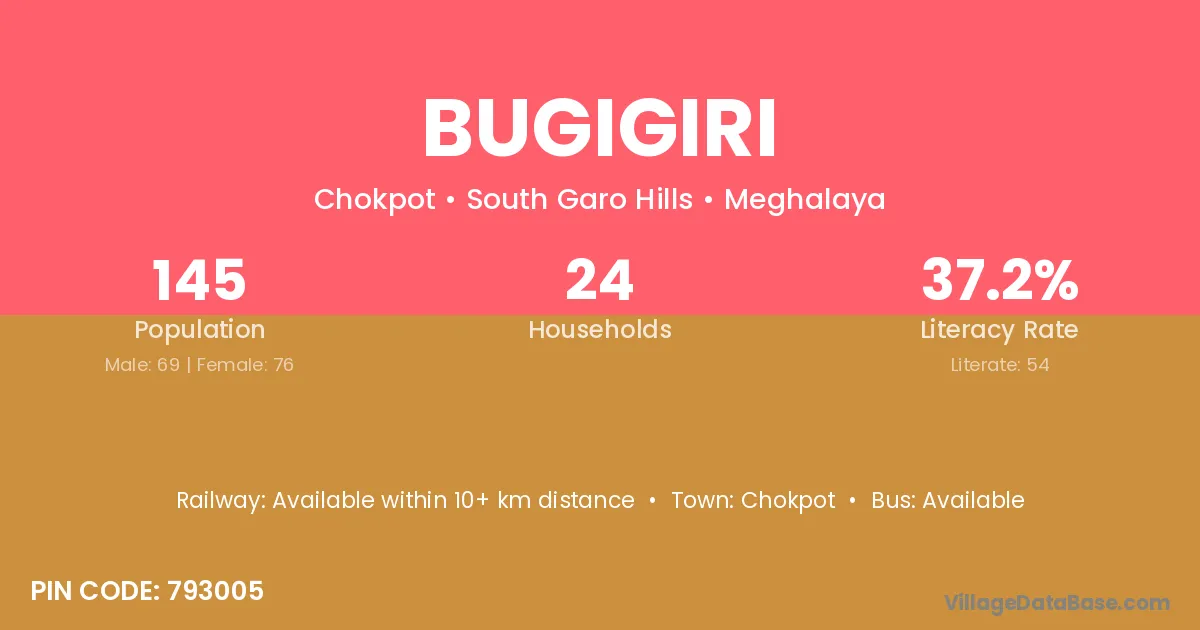 According to Census 2011 information, the village code of Bugigiri village is 793005.
