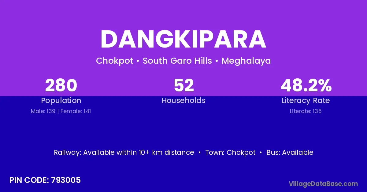 According to Census 2011 information, the village code of Dangkipara village is 793005.