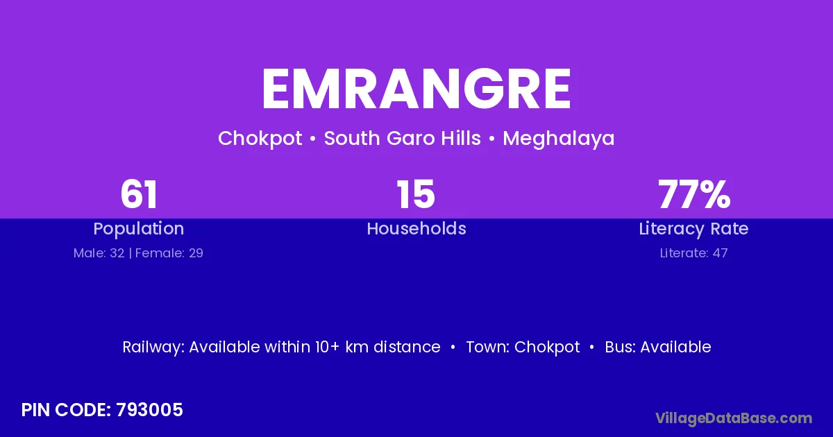 According to Census 2011 information, the village code of Emrangre village is 793005.