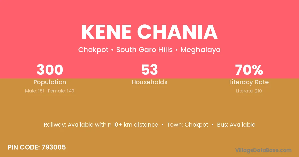 According to Census 2011 information, the village code of Kene Chania village is 793005.
