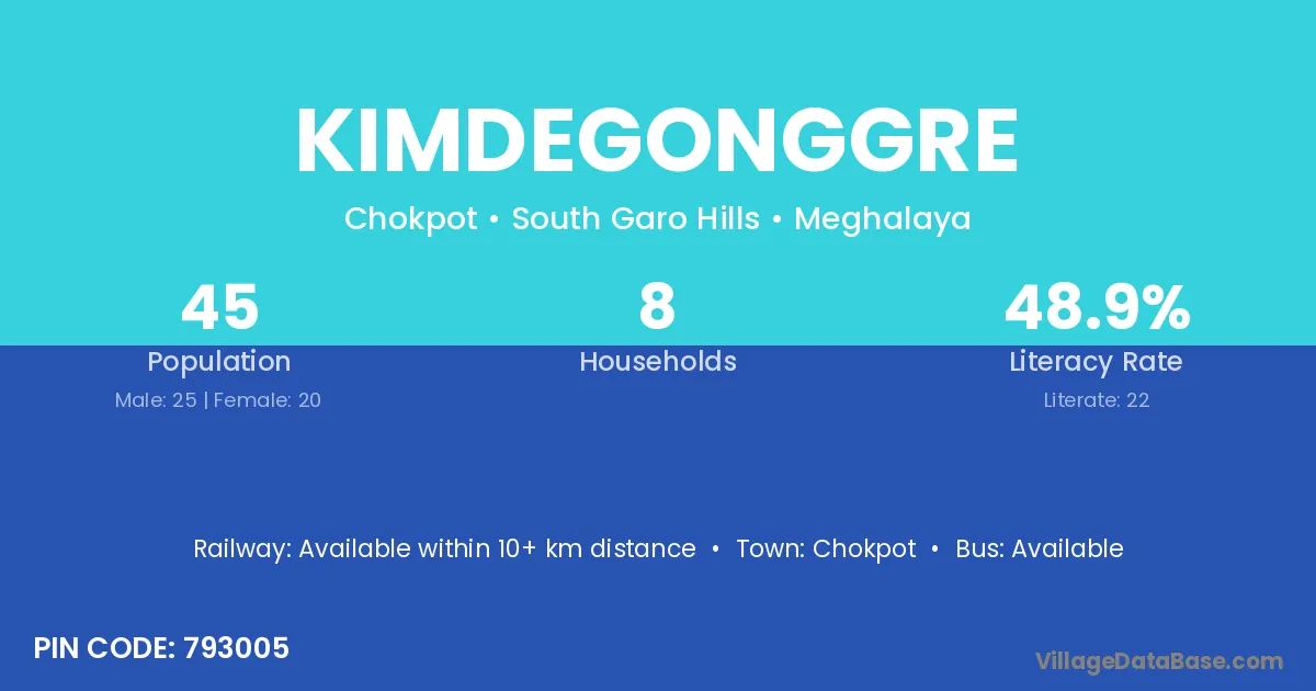 Kimdegonggre village has a total population of 45 people, of which 25 are males and 20 are females.