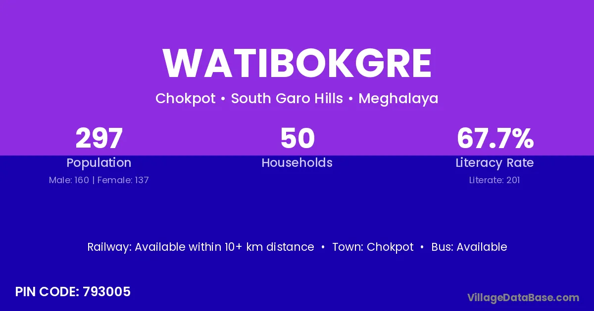 According to Census 2011 information, the village code of Watibokgre village is 793005.