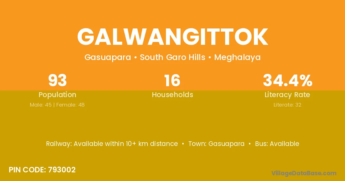 According to Census 2011 information, the village code of Galwangittok village is 793002.