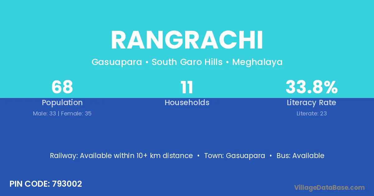 Rangrachi village has a total population of 68 people, of which 33 are males and 35 are females.