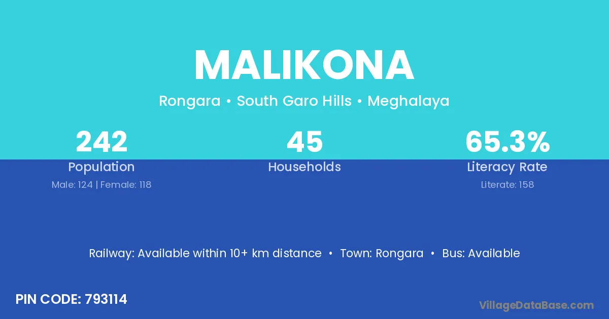 According to Census 2011 information, the village code of Malikona village is 793114.