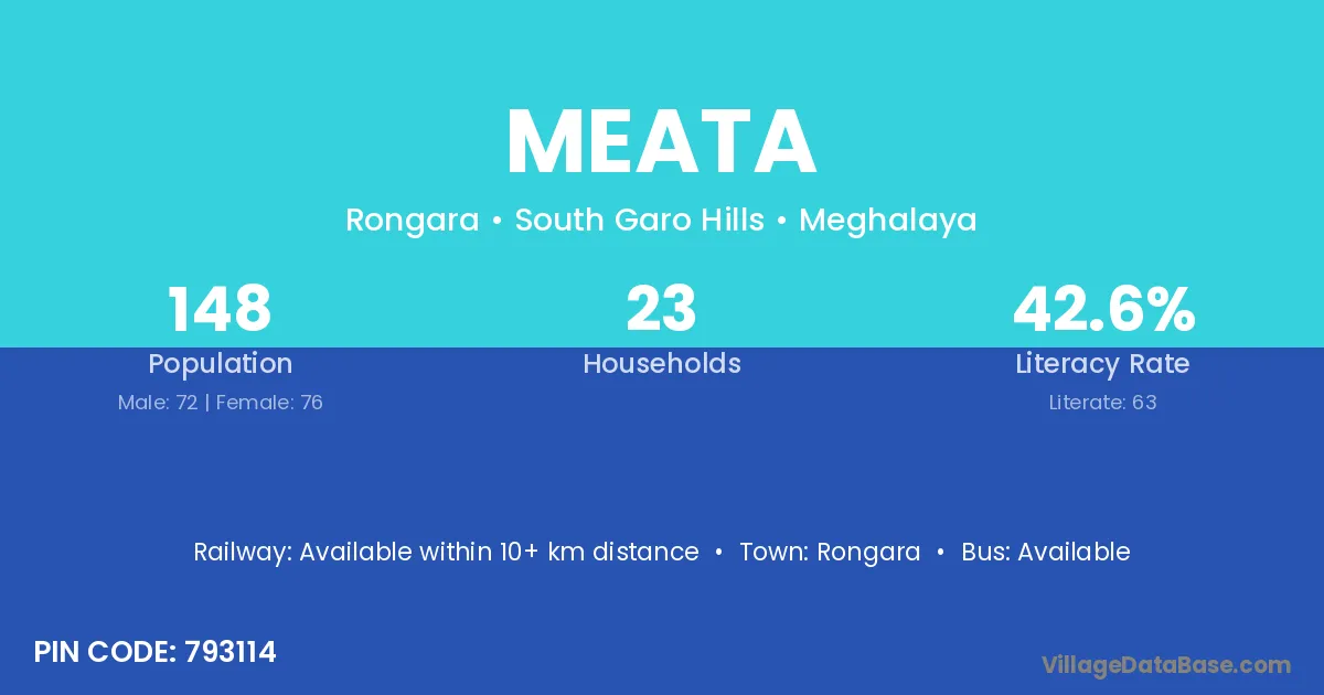 According to Census 2011 information, the village code of Meata village is 793114.