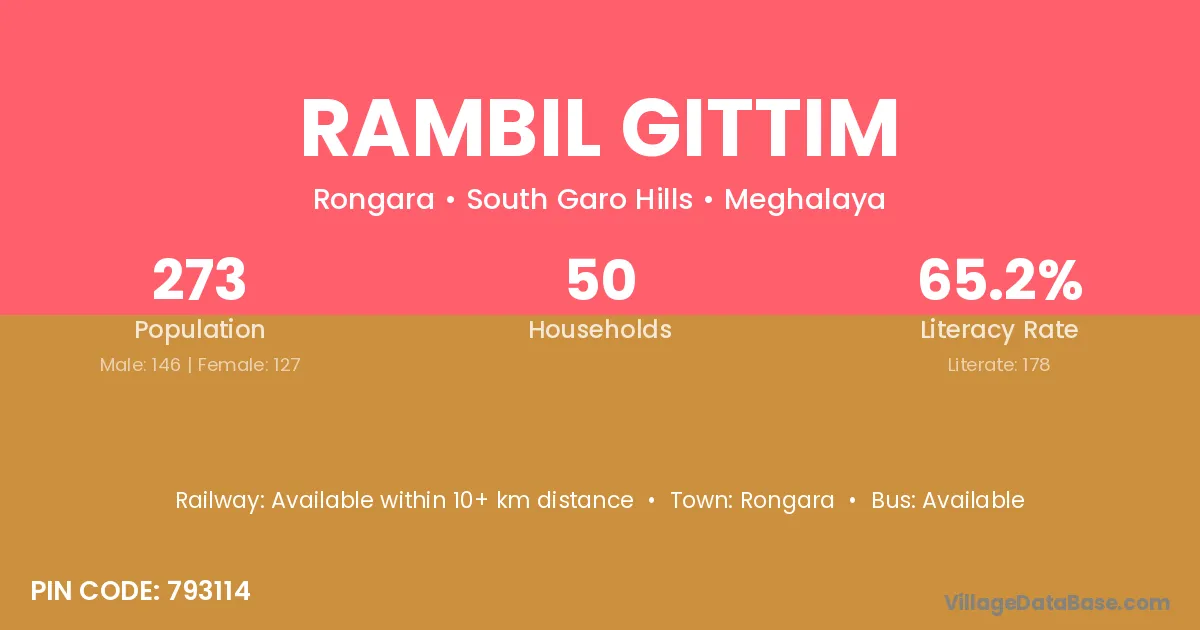 Rambil Gittim village has a total population of 273 people, of which 146 are males and 127 are females.