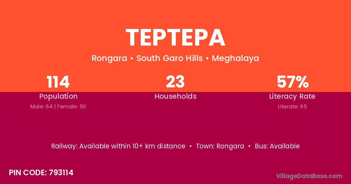 Teptepa village has a total population of 114 people, of which 64 are males and 50 are females.