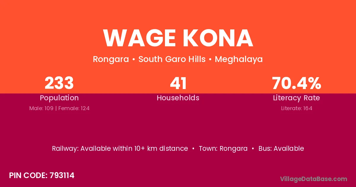 According to Census 2011 information, the village code of Wage Kona village is 793114.