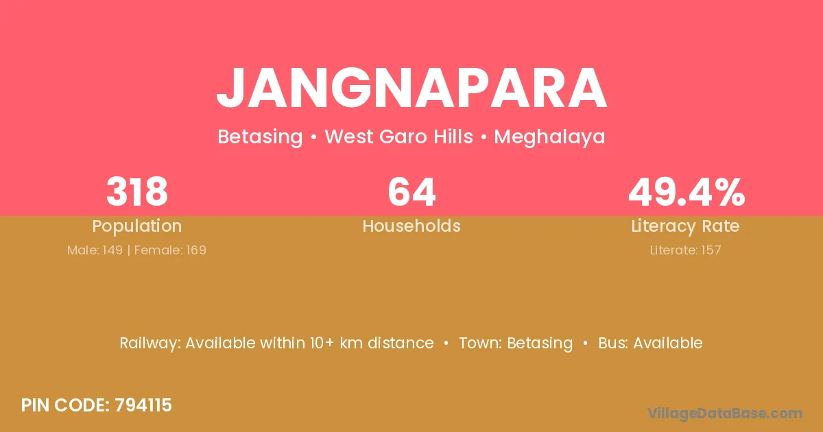 Jangnapara village has a total population of 318 people, of which 149 are males and 169 are females.