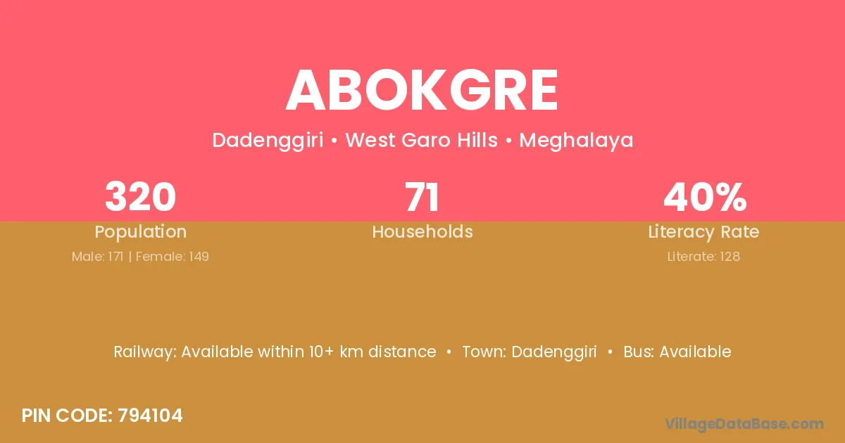 According to Census 2011 information, the village code of Abokgre village is 794104.
