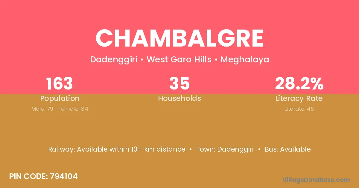 Chambalgre village has a total population of 163 people, of which 79 are males and 84 are females.