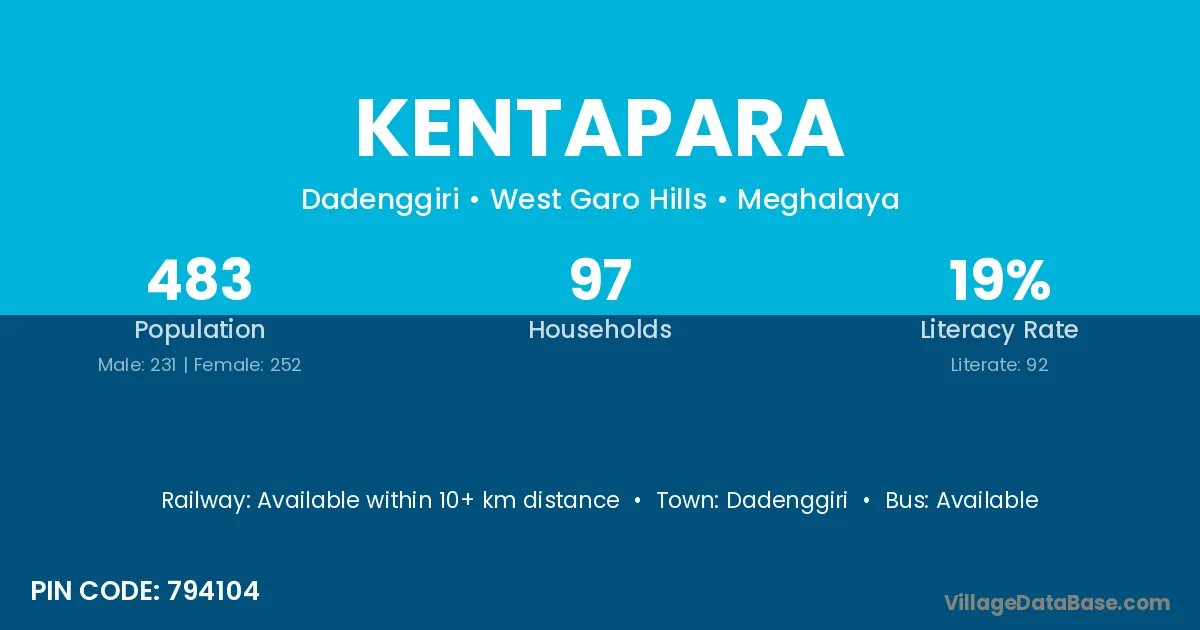 Kentapara village has a total population of 483 people, of which 231 are males and 252 are females.