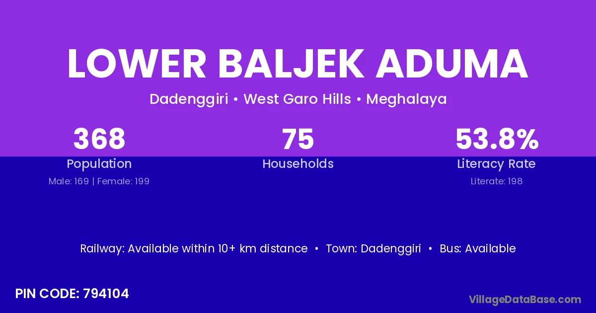 Dadenggiri is the nearest town to Lower Baljek Aduma village for major economic activities