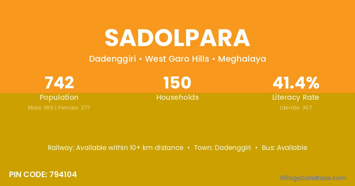 Sadolpara village has a total population of 742 people, of which 365 are males and 377 are females.