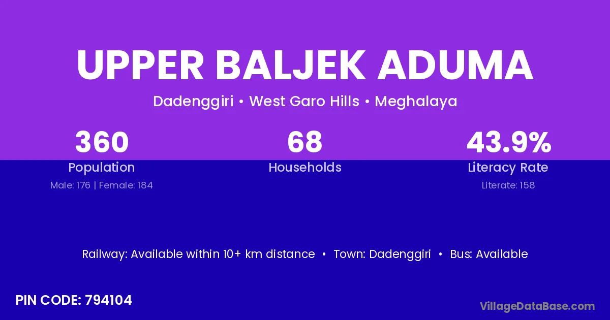 Dadenggiri is the nearest town to Upper Baljek Aduma village for major economic activities