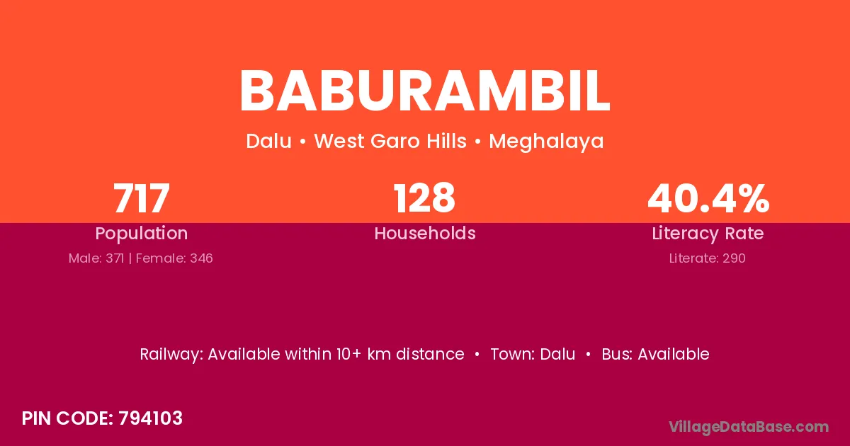 Baburambil village has a total population of 717 people, of which 371 are males and 346 are females.