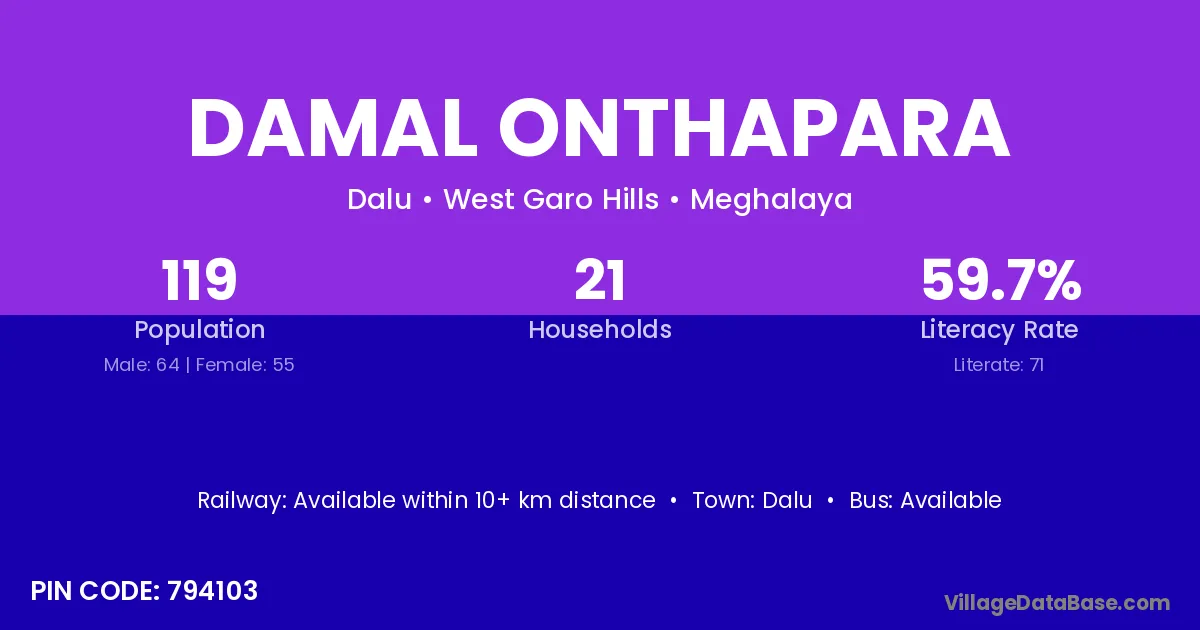 Damal Onthapara village is located in the Dalu Subdivision of the West Garo Hills district in Meghalaya .