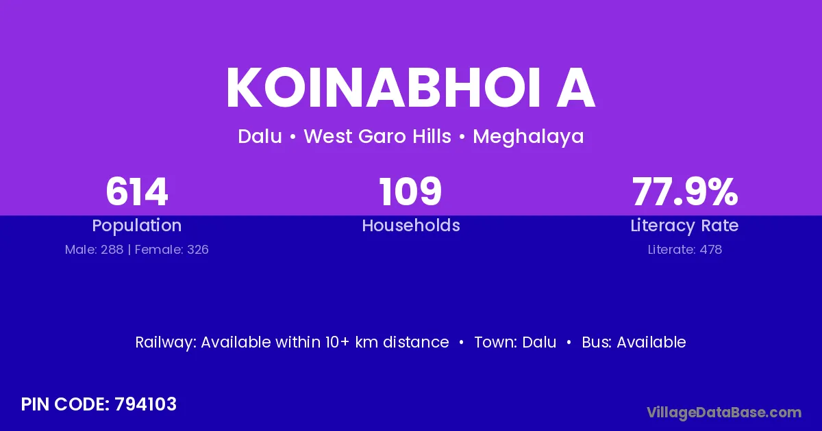 Dalu is the nearest town to Koinabhoi A village for major economic activities