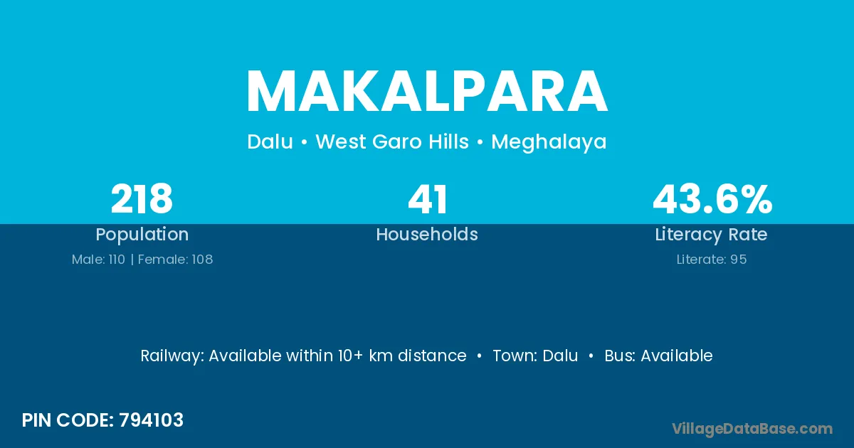 Makalpara village has a total population of 218 people, of which 110 are males and 108 are females.