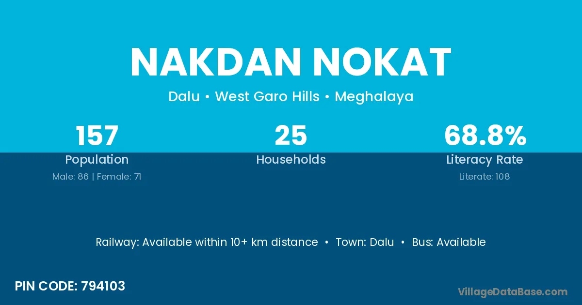 Dalu is the nearest town to Nakdan Nokat village for major economic activities