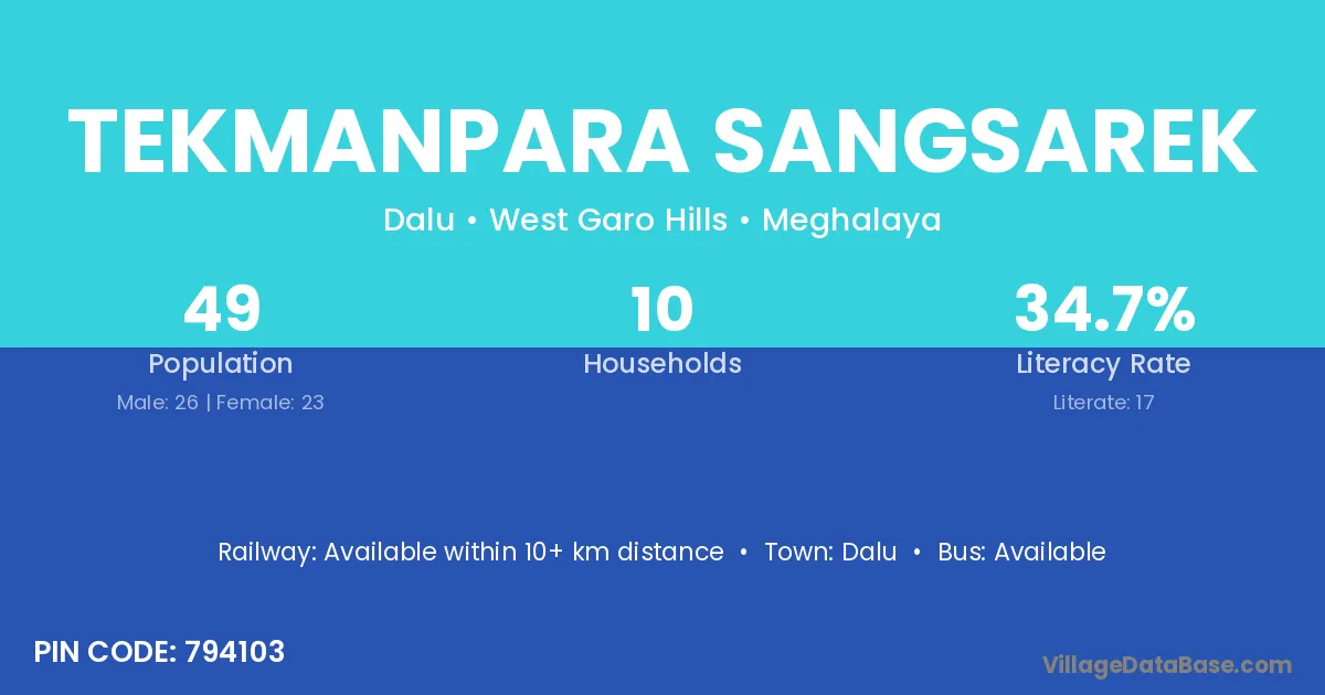 Dalu is the nearest town to Tekmanpara Sangsarek village for major economic activities