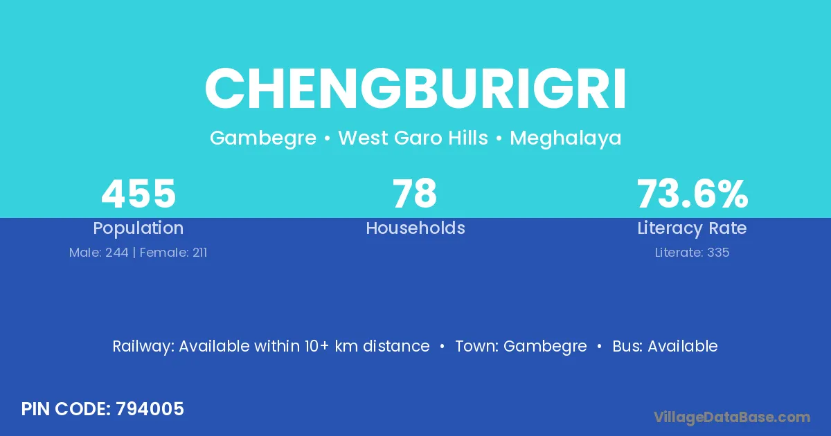 Chengburigri village has a total population of 455 people, of which 244 are males and 211 are females.