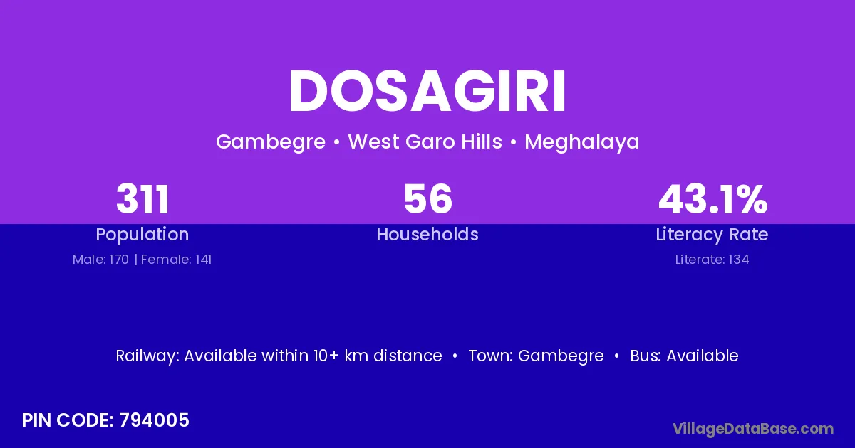 Dosagiri village has a total population of 311 people, of which 170 are males and 141 are females.