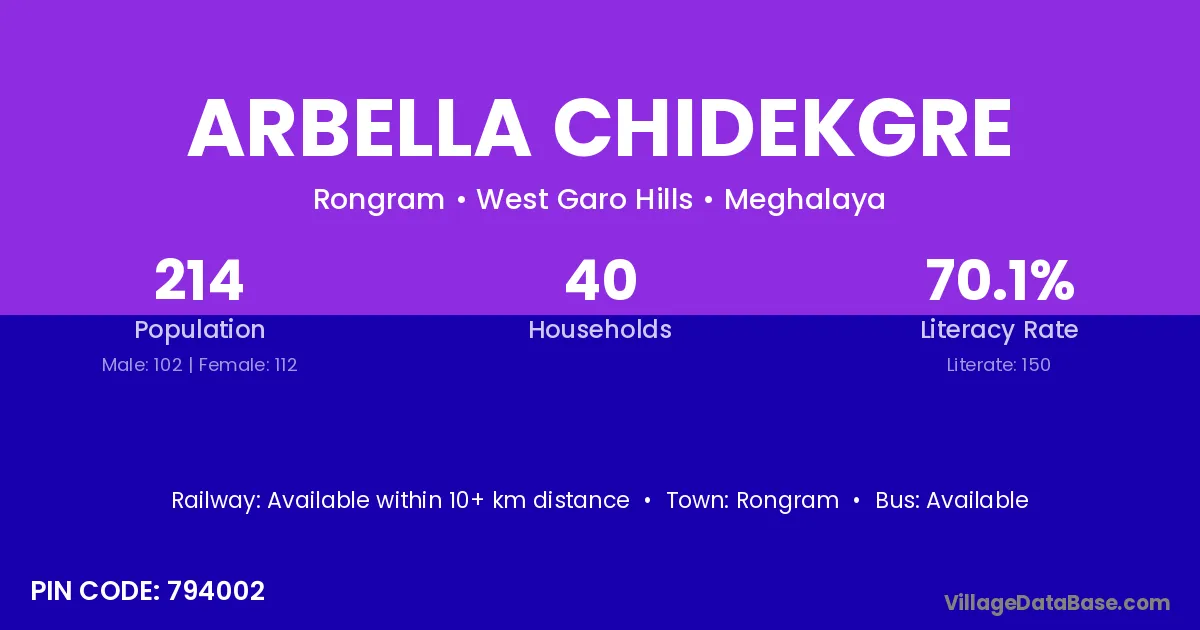 According to Census 2011 information, the village code of Arbella Chidekgre village is 794002.