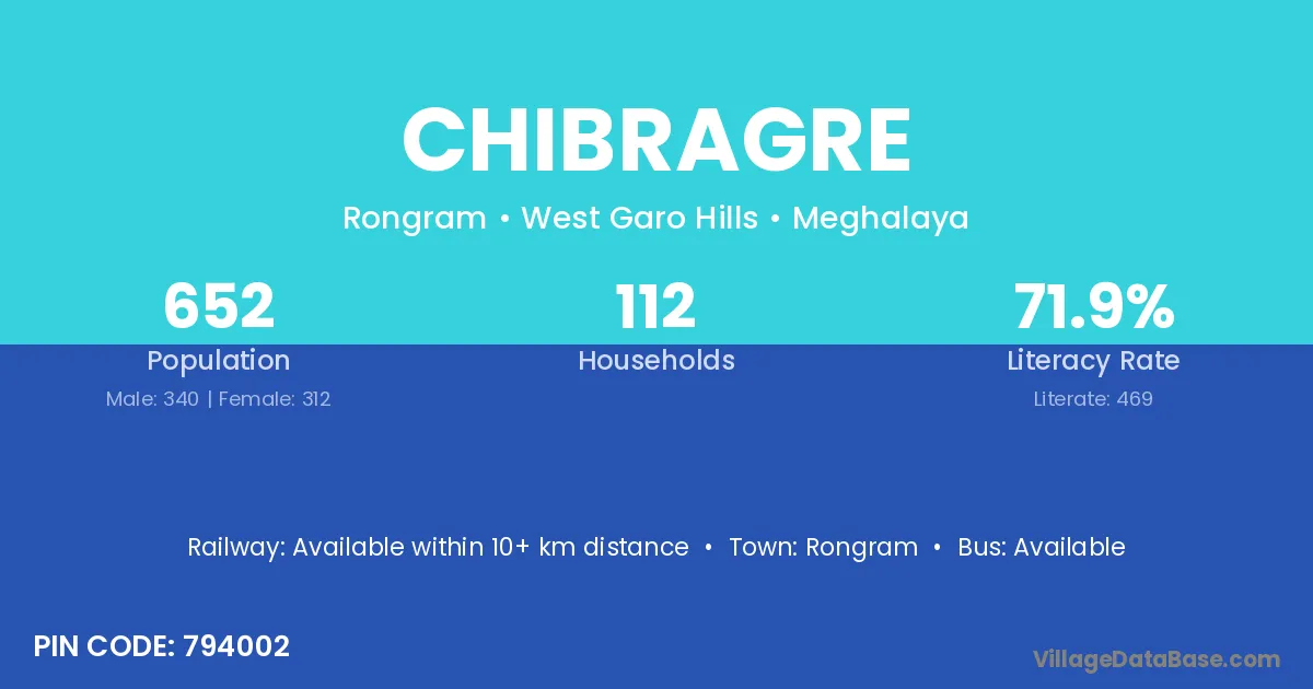 According to Census 2011 information, the village code of Chibragre village is 794002.