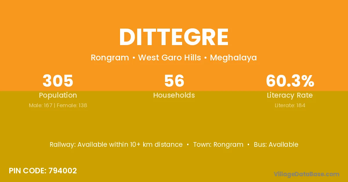 Rongram is the nearest town to Dittegre village for major economic activities
