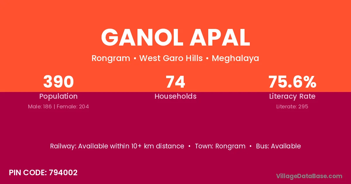 Rongram is the nearest town to Ganol Apal village for major economic activities