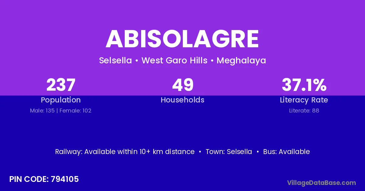 According to Census 2011 information, the village code of Abisolagre village is 794105.