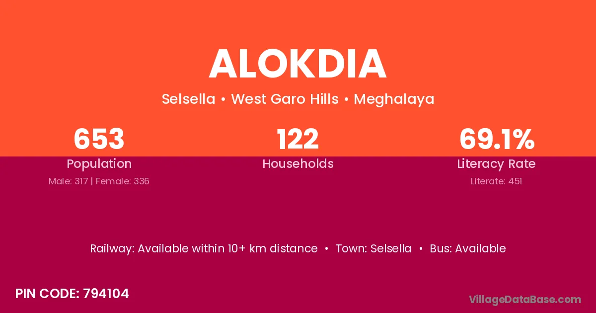 According to Census 2011 information, the village code of Alokdia village is 794104.