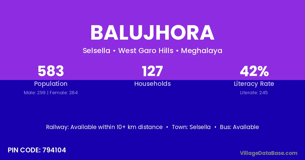 Balujhora village has a total population of 583 people, of which 299 are males and 284 are females.