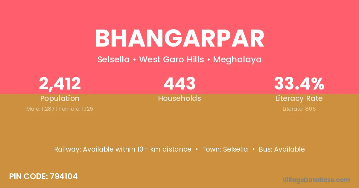 Bhangarpar village is located in the Selsella Subdivision of the West Garo Hills district in Meghalaya .