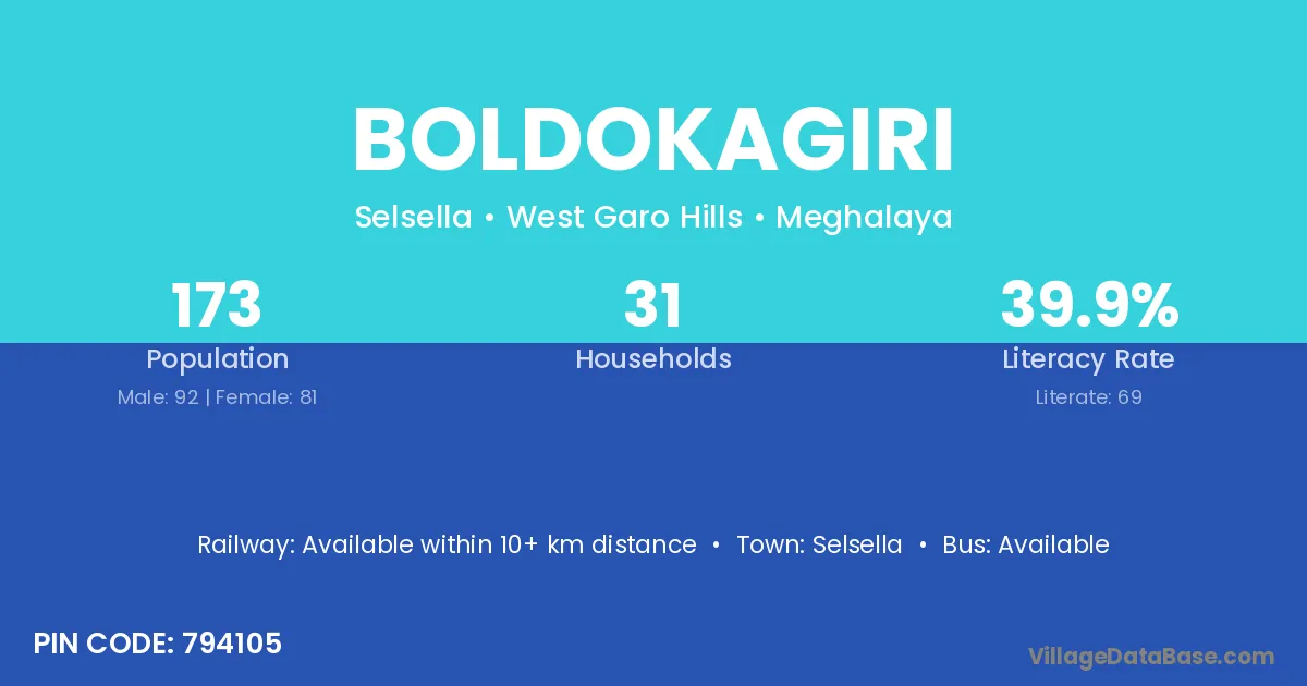 Boldokagiri village has a total population of 173 people, of which 92 are males and 81 are females.
