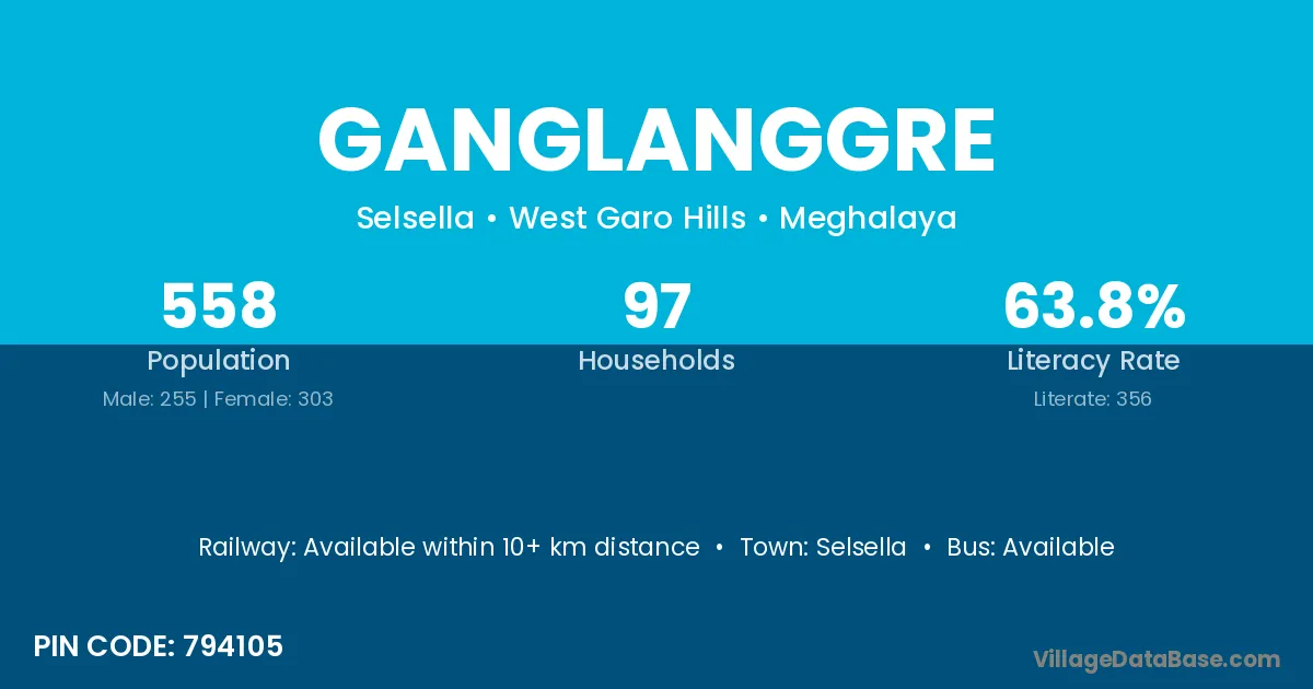 Ganglanggre village has a total population of 558 people, of which 255 are males and 303 are females.