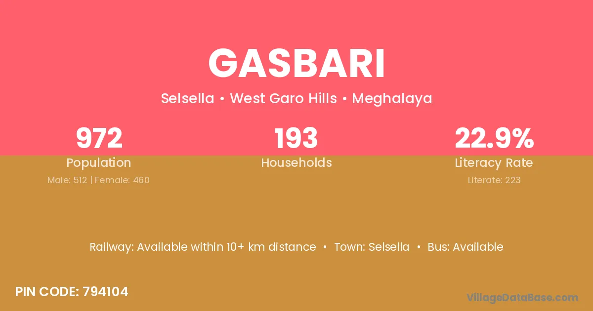 According to Census 2011 information, the village code of Gasbari village is 794104.