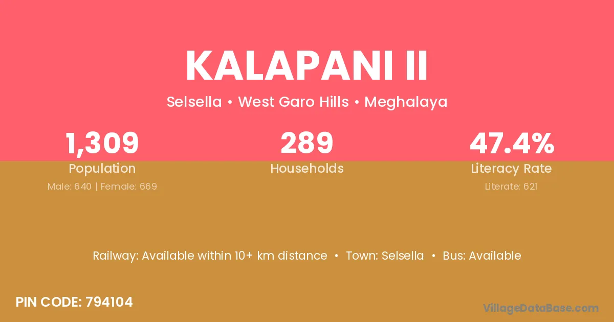 Kalapani Ii village has a total population of 1,309 people, of which 640 are males and 669 are females.